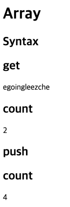 아래는 배열을 생성하고 데이터를 꺼내고 배열의 갯수를 보여주는 Html이다.