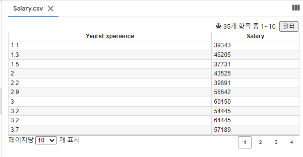 그렇게 하면 Salary.csv파일이 나오는데 csv파일은 콤마로 구별되는 파일이라고 하네요