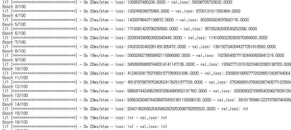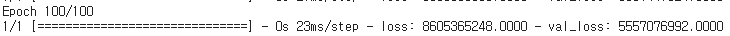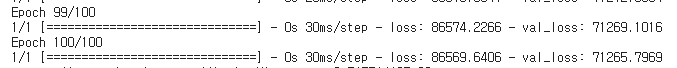model.compile(loss='mean_squared_error', optimizer=SGD(lr=0.1))#Adam에서 SGD로 교체