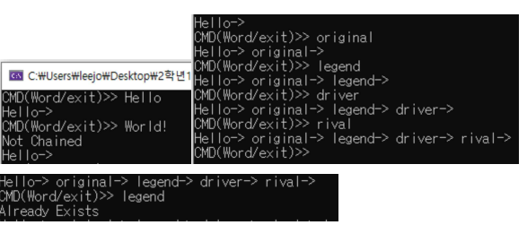 기존에 있었던 문자열 같은 경우 1을 반환하고 이미 존재한다! 를 출력해줍니다.