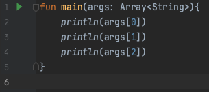코틀린의 main() 메서드에서 매개변수를 사용할 경우는 Run -> Edit Configuration에서 program arguments를 수정하면된다.
