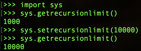 파이썬 인터프리터는 1,000번의 횟수 제한이 있지만, 제한을 변경할 수 있다.